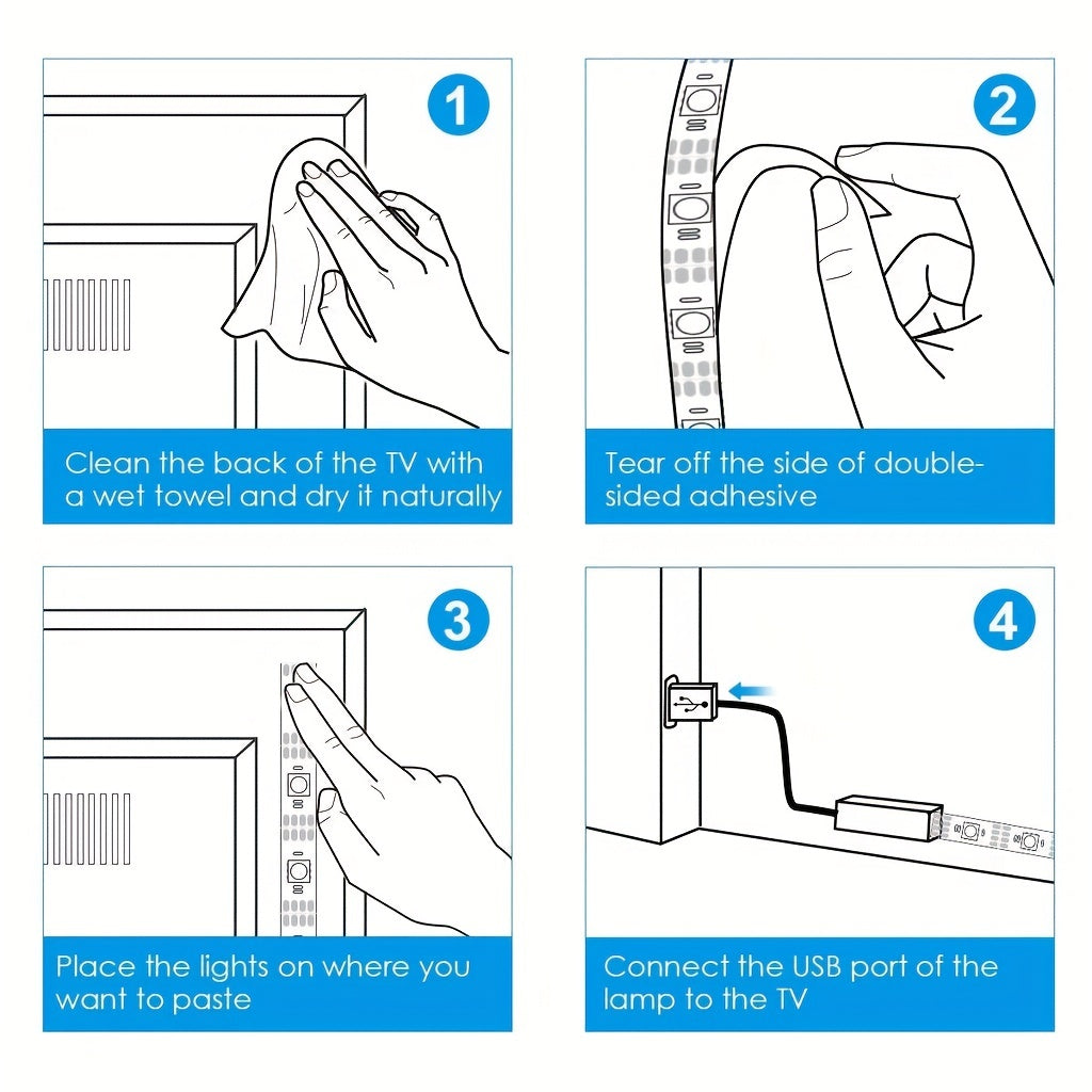 1 ensemble de ceinture de lumière TV à rétroéclairage USB DIY, bandes lumineuses LED, 3.28FT/9.84FT SMD 2835 LED Flexible Cabinet Light pour la décoration de la maison